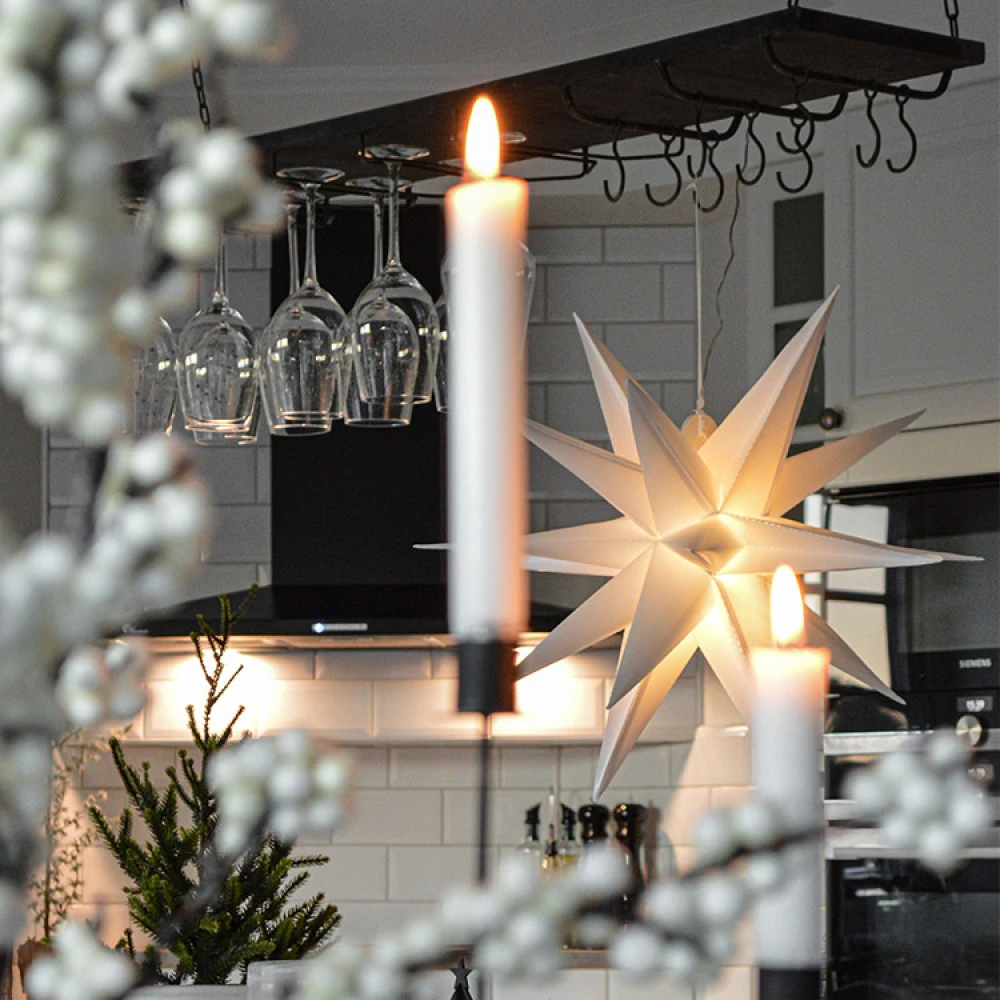 Experience Christmas magic in your garden and on your balcony with a large, white 3D Christmas star. The battery-powered Christmas star is designed for outdoor use and has 12 cosy, warm white LED lights.