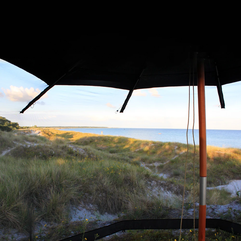 Airhouse accommodates groups in most forms with seating for 8-10 people. On bright summer evenings, the netting is perceived as transparent. Feel free to compare pictures taken from inside against those from outside to clearly show how little your vision is disturbed!