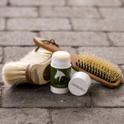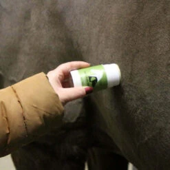 Use the anti-chafe stick on the coat for preventive purposes where friction may occur from the equipment. Examples include under blankets, girths, harnesses, halters, bridles, fly hoods and leg guards.