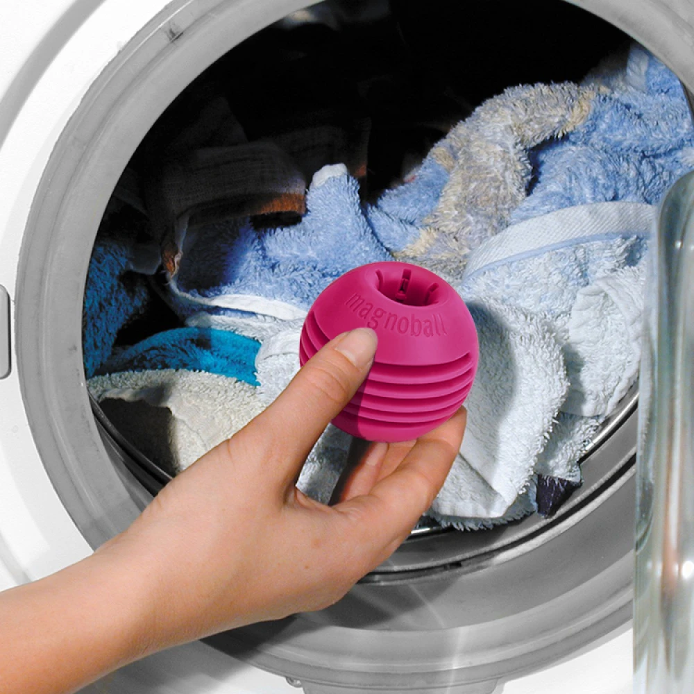 Anti-limescale magnet ball is a strong magnet that makes water softer and counteracts calcium deposits. Place the Anti-limescale magnet ball in the silverware holder in your dishwasher or together with your clothing in the washing machine. Wash as usual; the Magnoball crystallizes the hard water and makes it up to 70% softer.