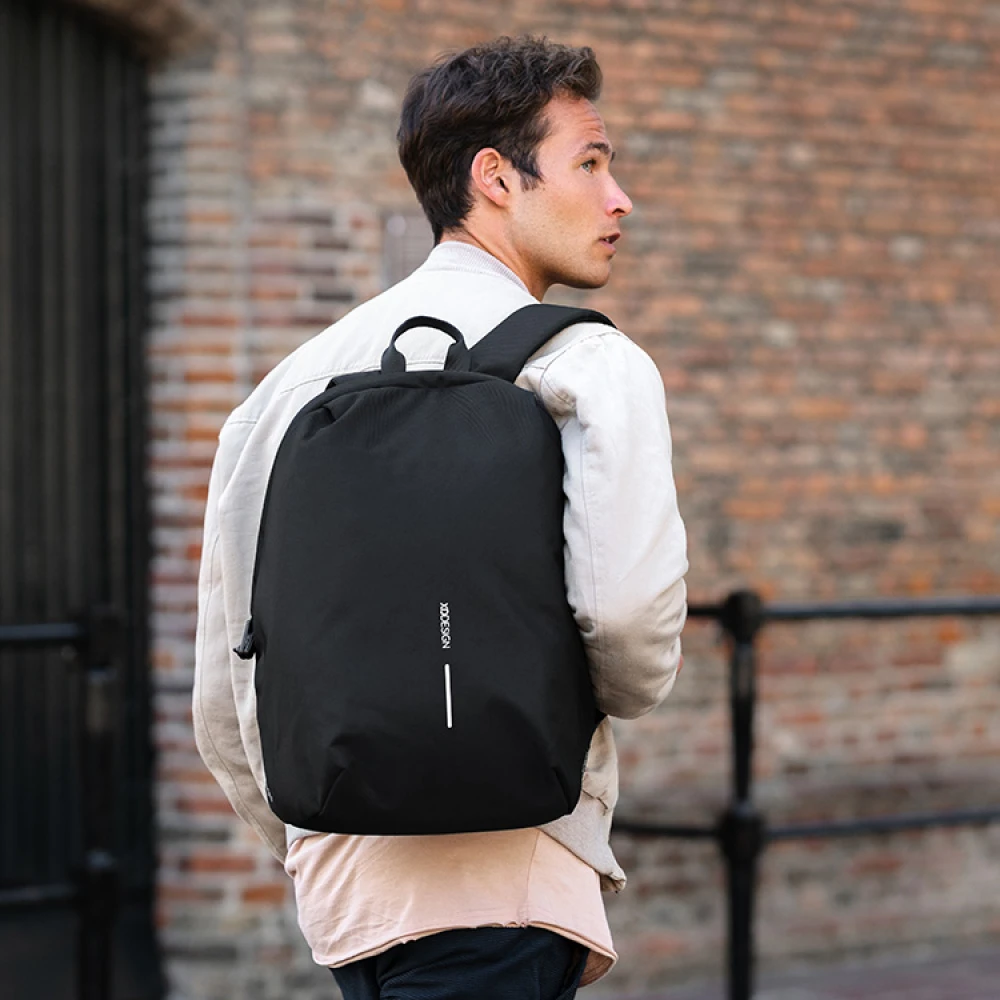 The anti-theft rucksack Bobby Soft is a comfortable rucksack that you can safely carry your things in when you’re in town or travelling. The rucksack is water-repellent, has hidden pockets and a lockable zipped main compartment that can also be made larger if needed.
