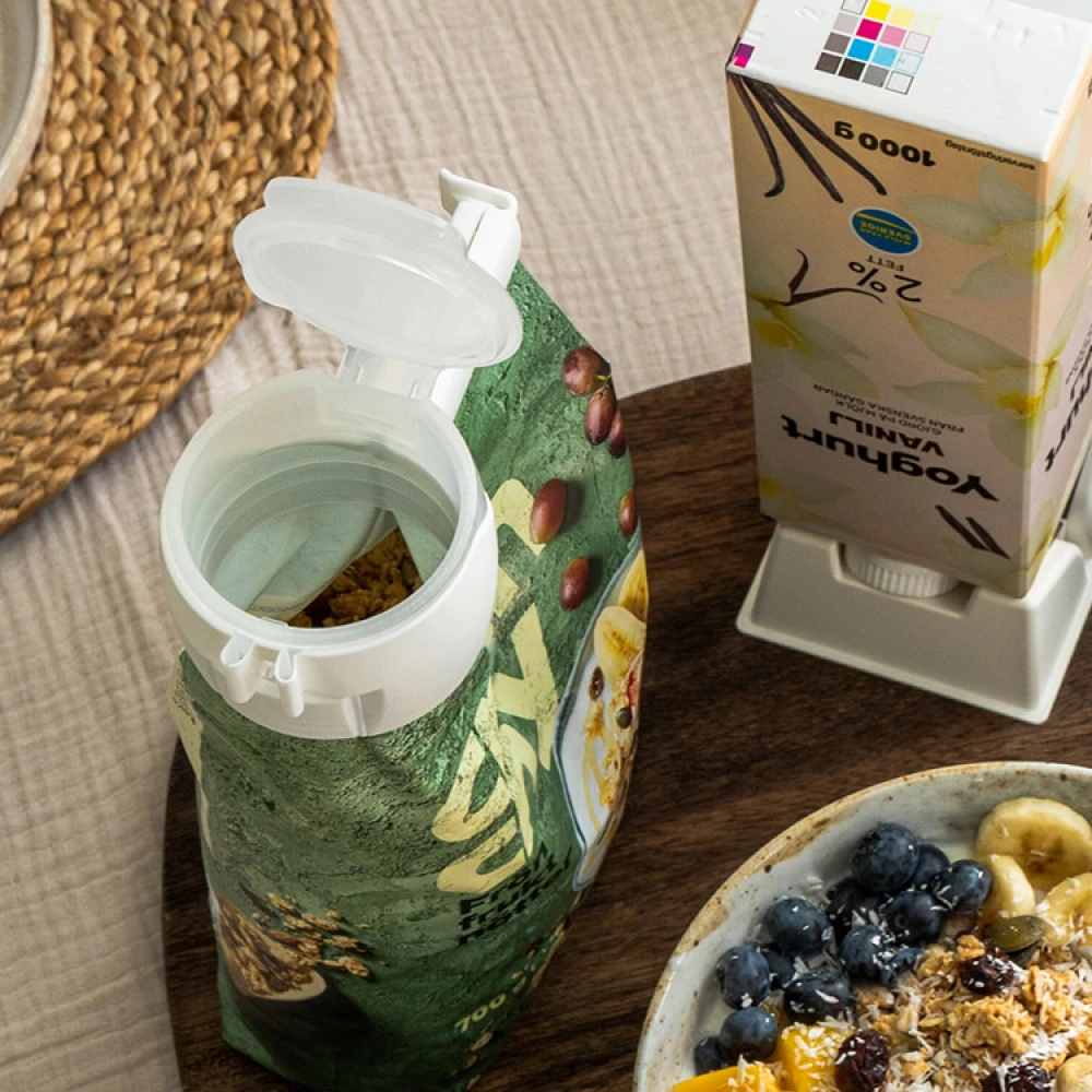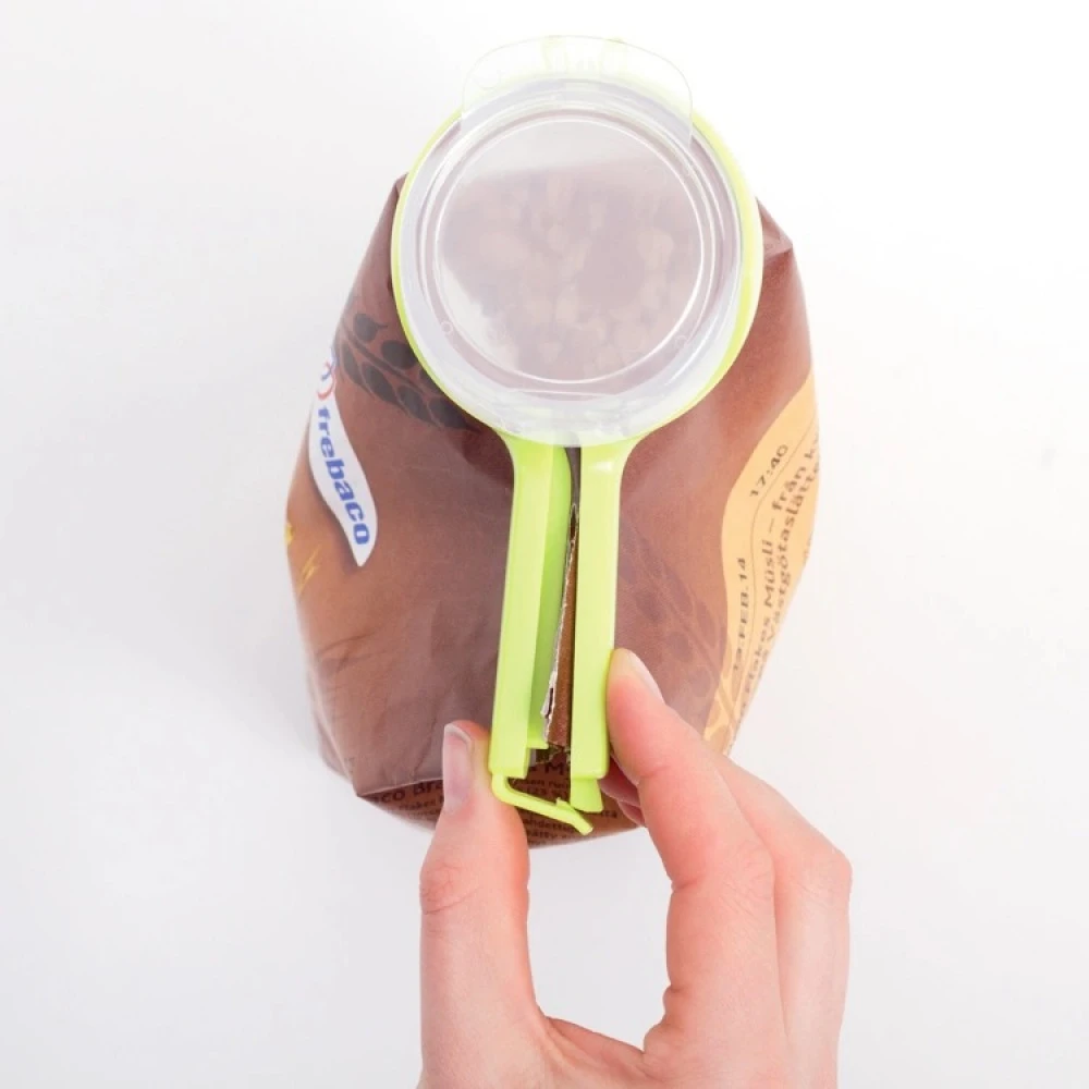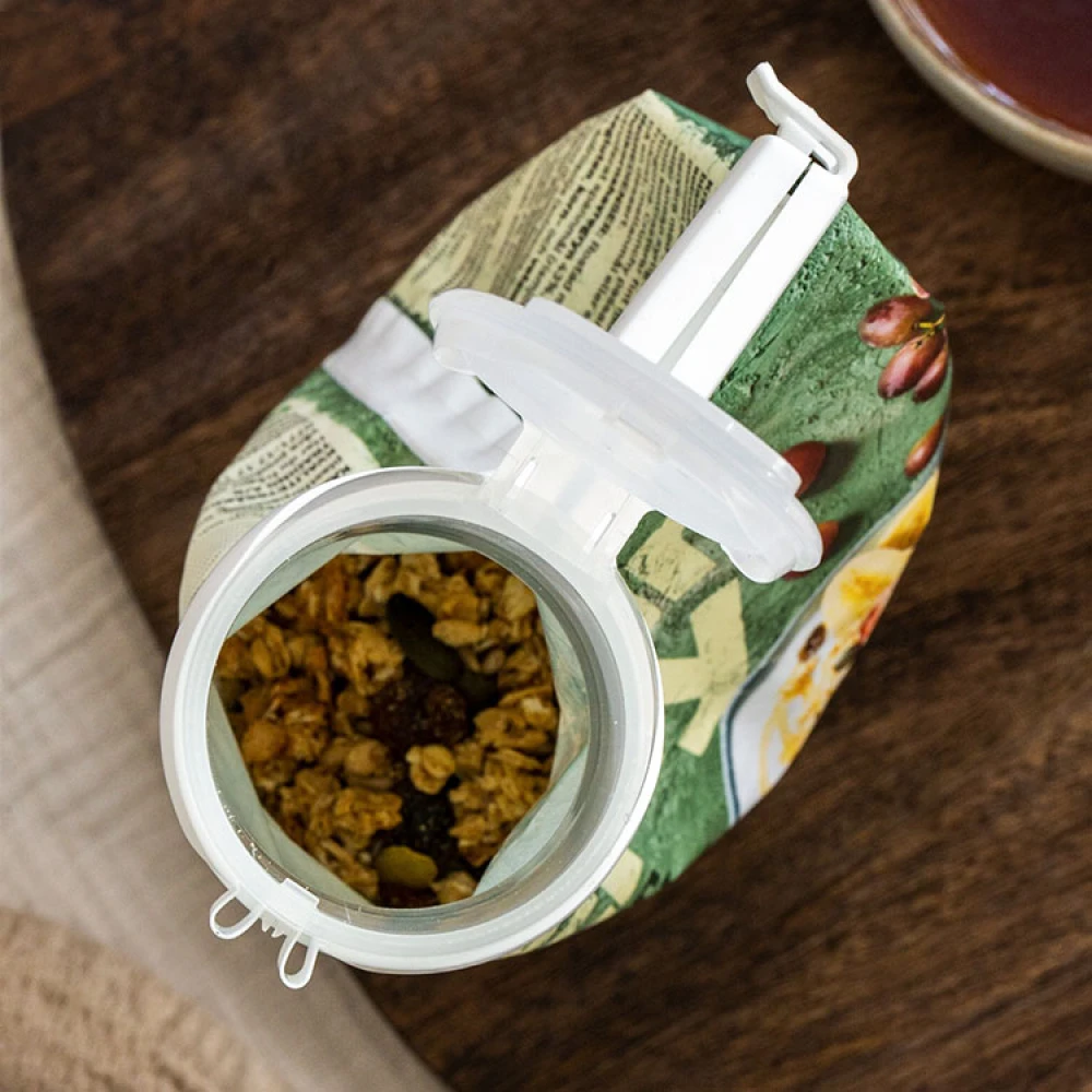 The resealable lid keeps everything from flour, coffee beans, sugar, muesli, and more fresh. No need for a separate container! Just close the bag it comes in with the clip. When you’re ready to enjoy some of your food, simply open the lid and pour the desired amount directly from the bag.