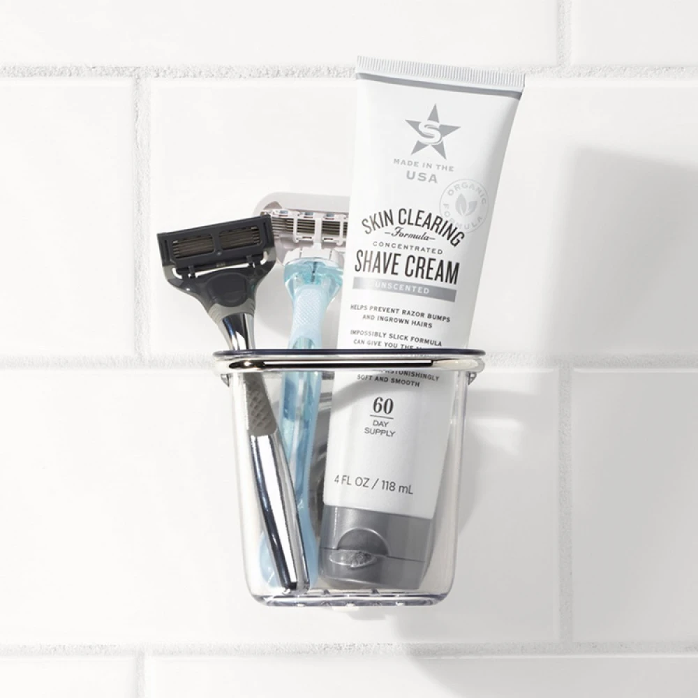 The practical cup can easily hold razors, lotions and other toiletries. The cup is also big enough to hold the whole family’s toothbrushes plus the toothpaste. The robust plastic cup has handy draining holes in the bottom for water to escape.