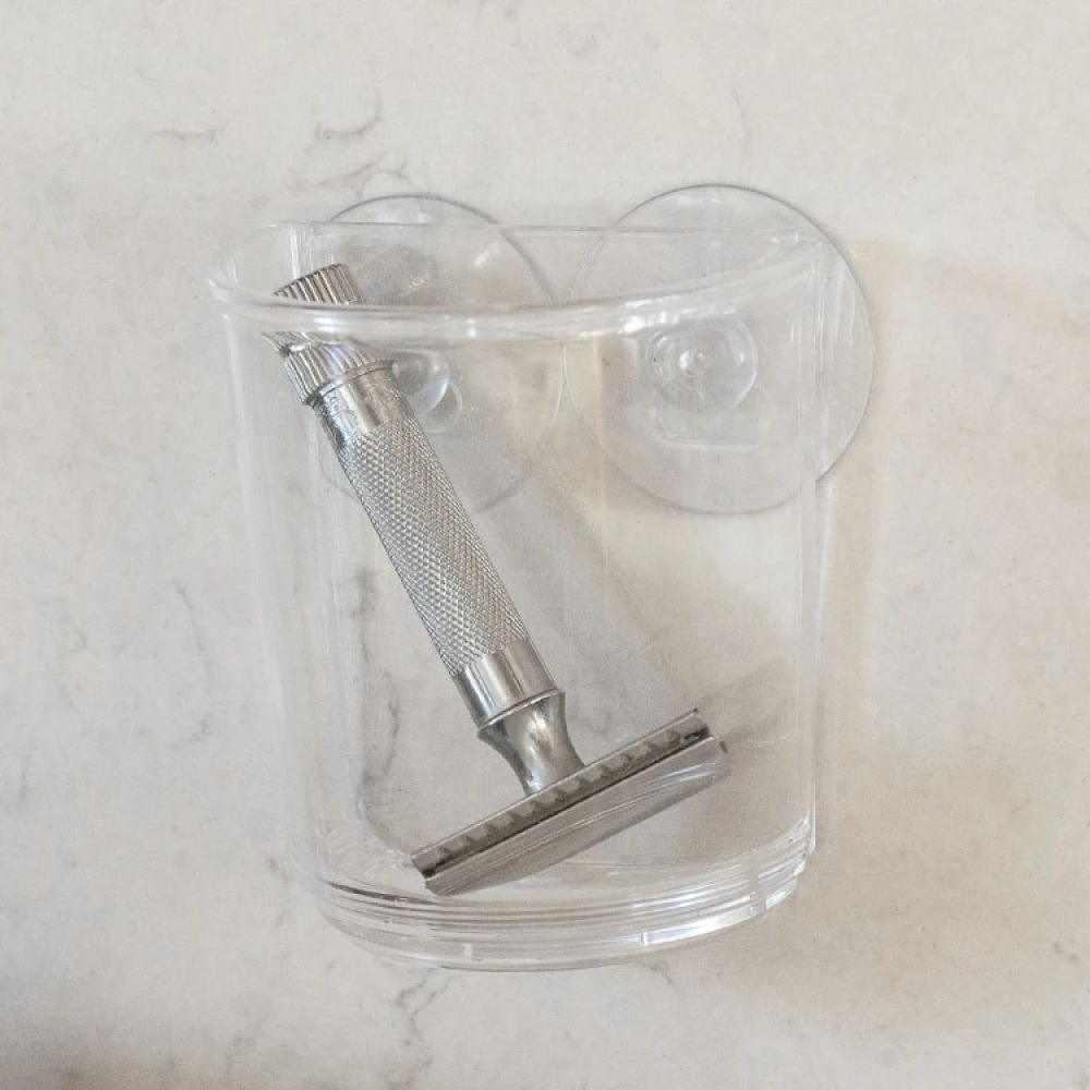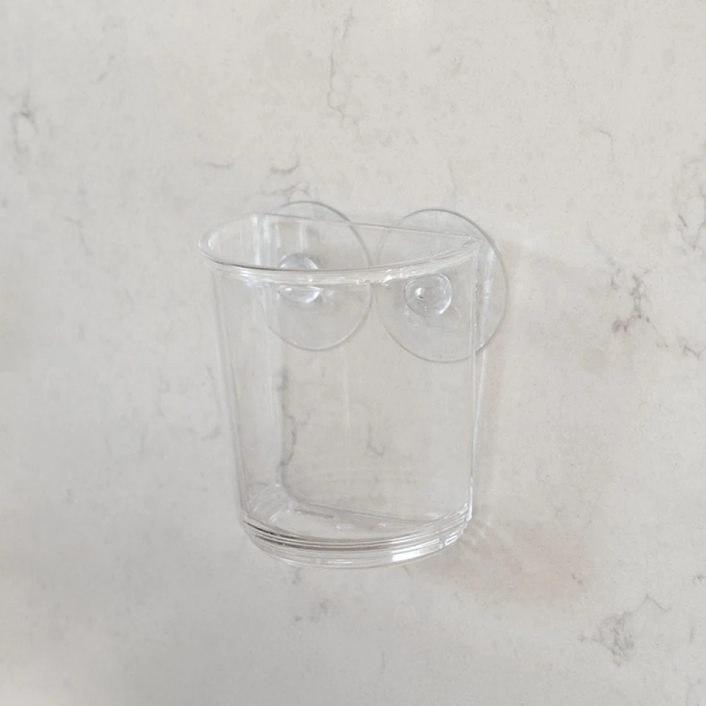 Store your toothbrush, razor or comb in a clever little bathroom cup on the wall. The bathroom cup is attached to the wall with strong suction cups and is perfect to have as a wall cup in the shower or as a bathroom cup next to the sink.