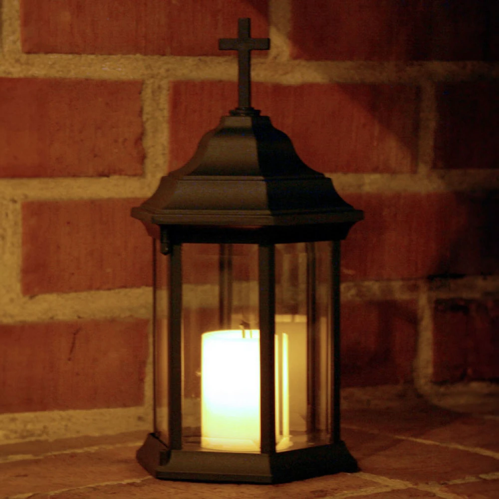Included is a post that is easy to push into the ground and a replaceable cross. The lantern is easy to change from a garden lantern to a grave lantern by unscrewing the hanging ring on the post and screwing in the cross. Instructions in Swedish included.