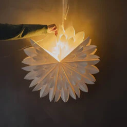 Put the lights in your Christmas star and tie it up using the Christmas star strings. Then hang up the Christmas star by tying it with the transparent power cable that connects to the small battery box.