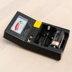 Easy-to-use battery tester that quickly shows the battery power of your small batteries. The battery tester can test both disposable batteries and rechargeable batteries and makes it easy to see when a battery needs to be charged or replaced.