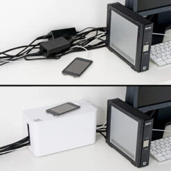 The Bluelounge cable box makes it easy to hide cords, adapters, and power strips with several sockets. The elegant cable box comes in a variety of colours and fits perfectly under your desk, by the TV or next to the sofa.