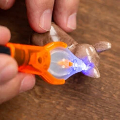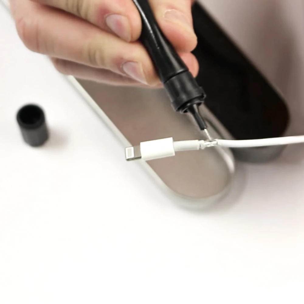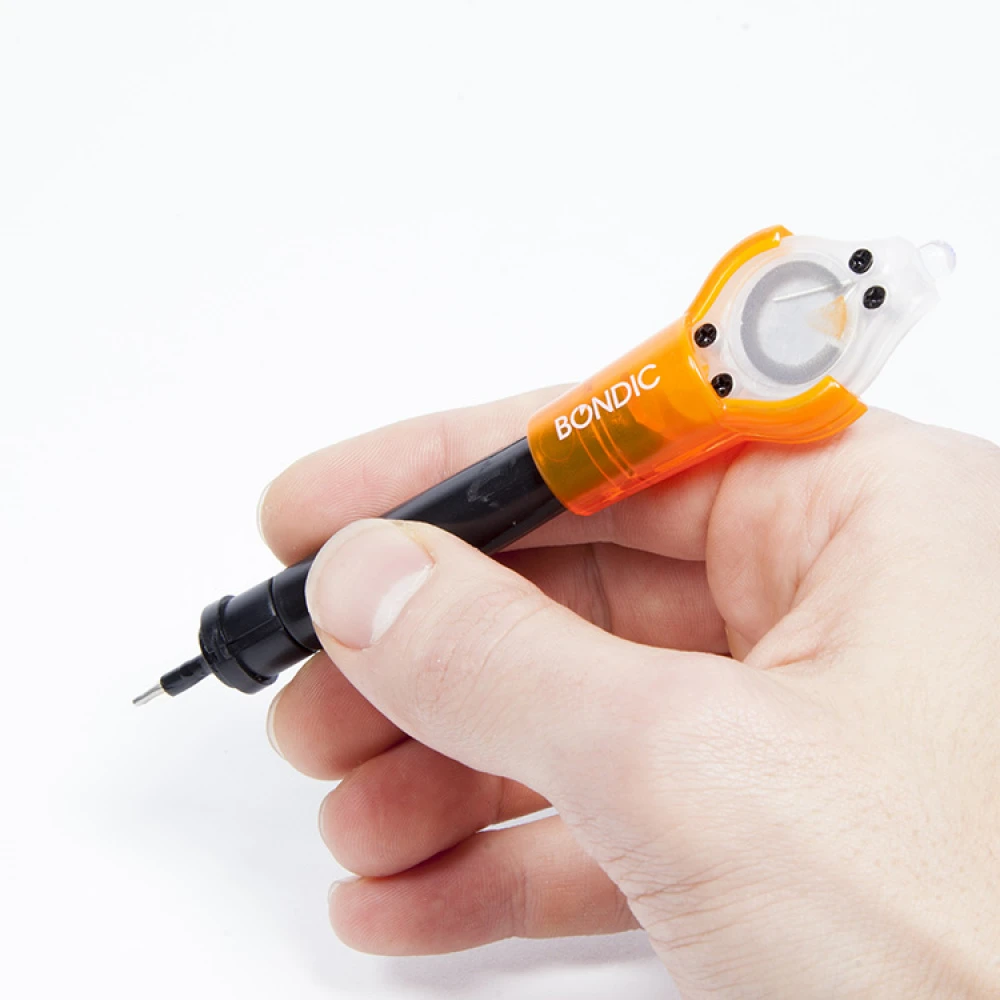 The pen-shaped welder allows you to squeeze out the exact amount you need and the small nozzle makes it easy to apply Bondic to small surfaces. The UV lamp is placed on the back of the pen and can easily be removed if desired.
