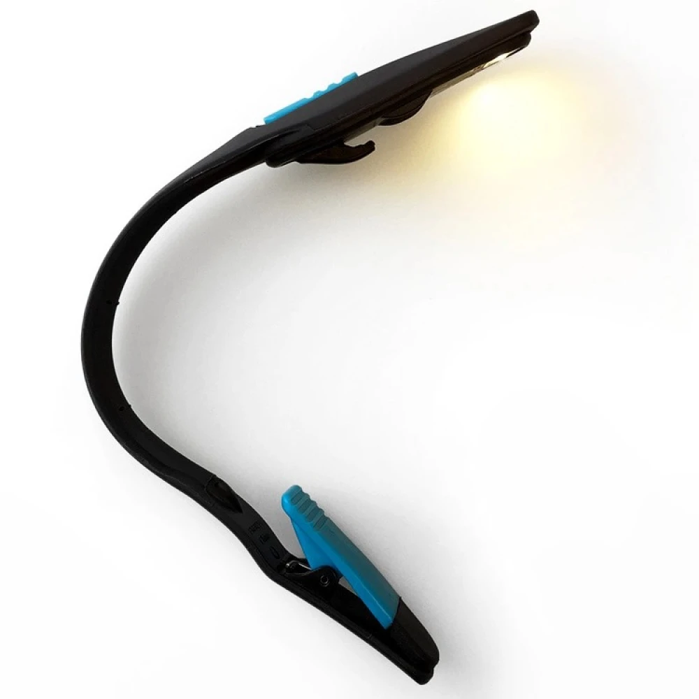Super smart little book lamp with flexible neck that can be clampedonto your book when you need a little extra light. The book lamp weighs only 50 grams and is practical for long trips in a car, bus or airplane.