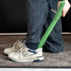 With the shoe horn on the underside you have a handy way to put on your shoes. The durable plastic is stable and you can push hard with your foot without the shoe horn bending.
