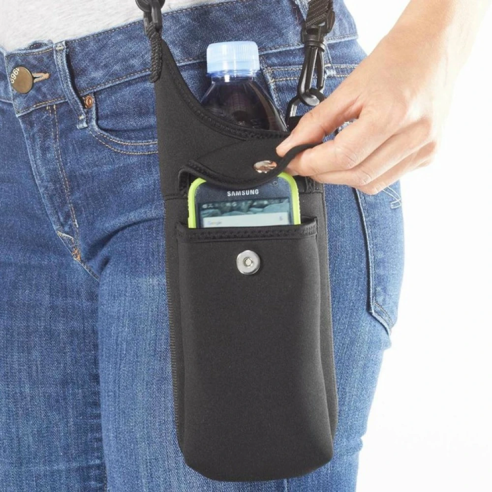 Transport your water bottle easily in this handy bottle bag when you exercise, go on a day trip, explore a new city, or go for a walk on the beach. The bag holds a maximum of a 1-litre bottle and is made of durable neoprene which has a natural insulating ability to help the drink stay chilled longer.