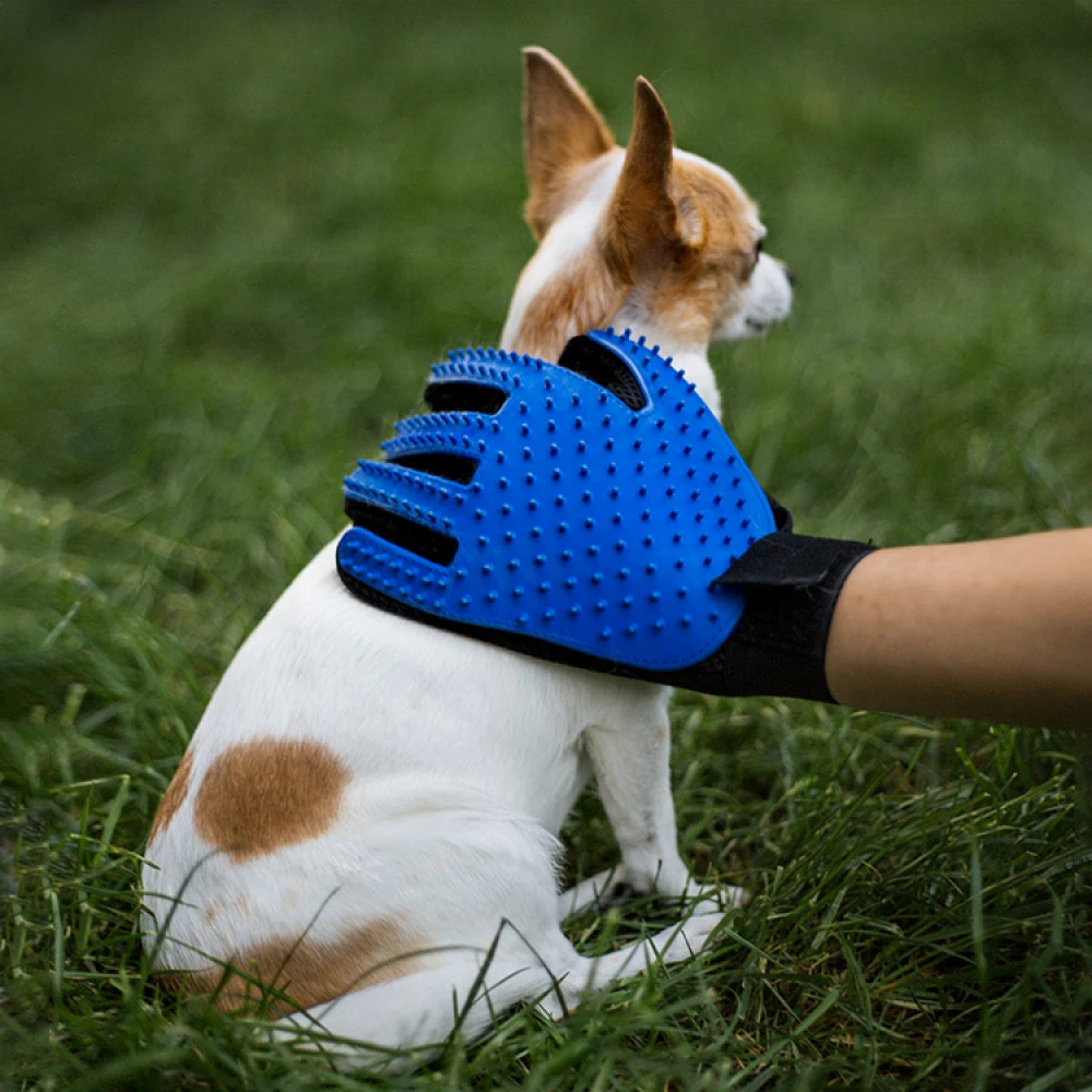 The glove has soft silicone tips on one side and is completely smooth on the other. Put the glove on the right hand and gently pat with the soft tips. The tips brush the fur and catch loose hairs that sticks to the glove. The soft tips mimic a soft and relaxing massage and increases blood circulation.