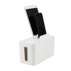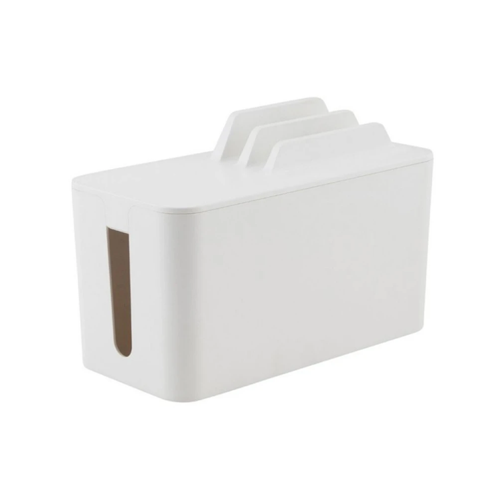 The cable box can hold a small extension lead with chargers and wires, and is easy to use. Just lift the lid, set up your whole extension lead with all the cables, and close the lid. You’ve now hidden all the ugly chargers and wires from your desk or wherever else you tend to charge your devices.