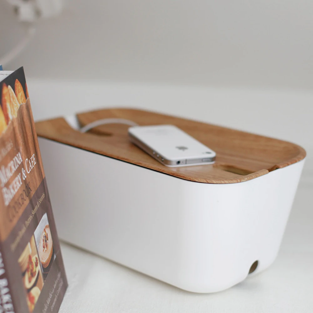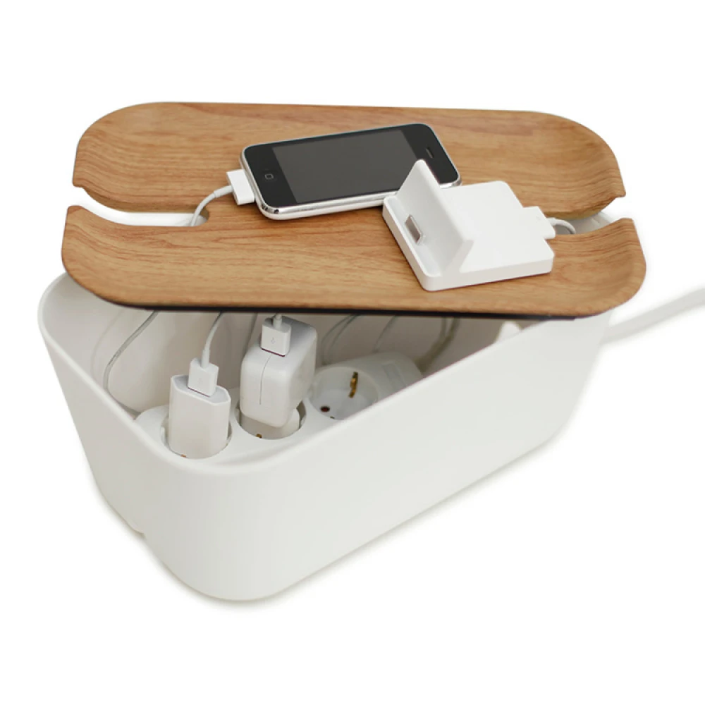 Our larger boxes are practical to place under the desk or next to the TV, anywhere there tends to be bulkier cables. Our smaller boxes are great for your desk, bedside table or shelf.