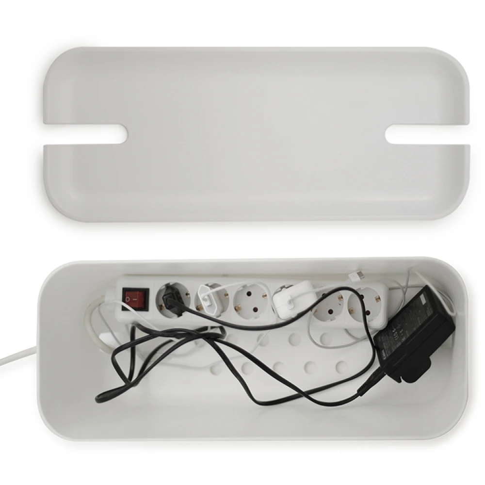 Hide away cables, extensions and sockets in this clean-cut and practical cable-management box. The reduced clutter on your desk or in your office will be certain to give you a clear mindset.
