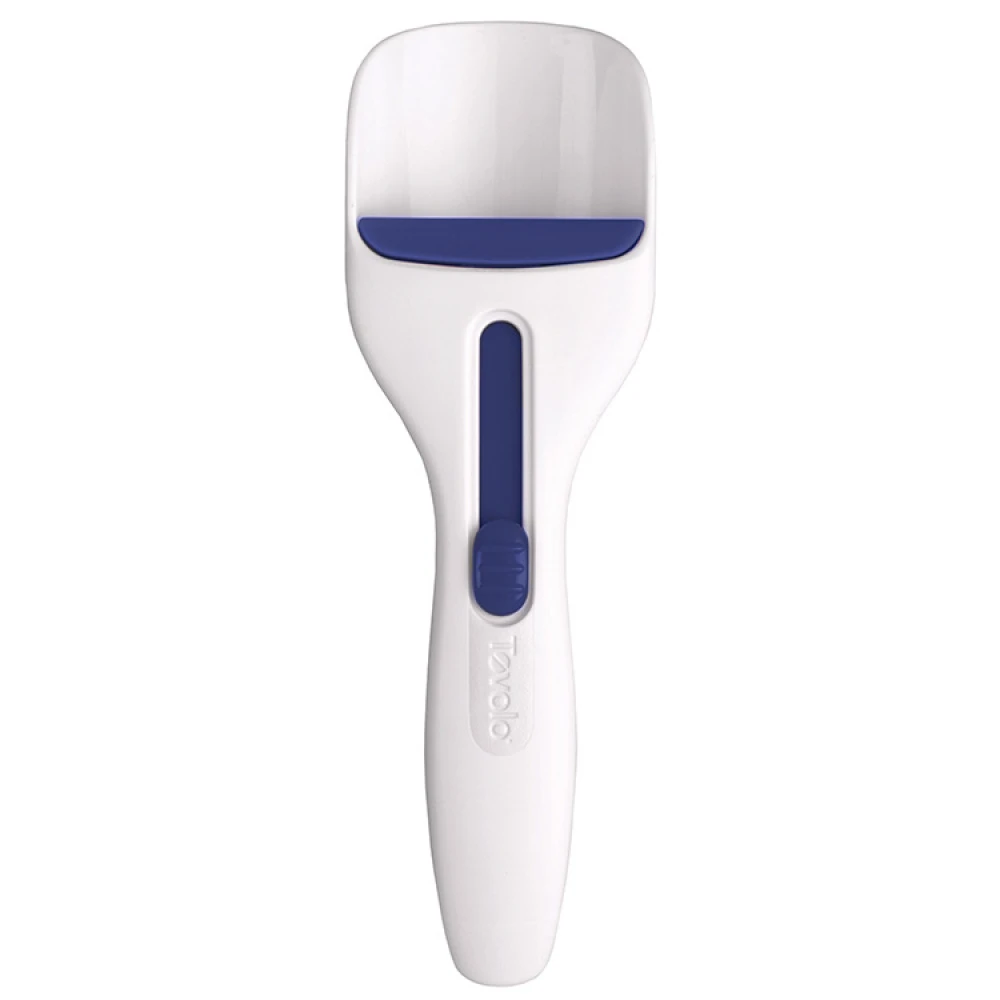 The cake mix scoop helps you save on the washing-up and is much less messy than using two different tools. The scoop can easily be operated with single hand.