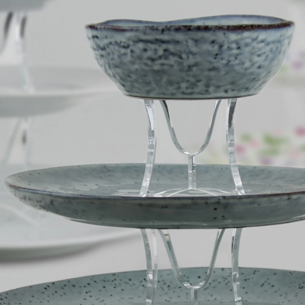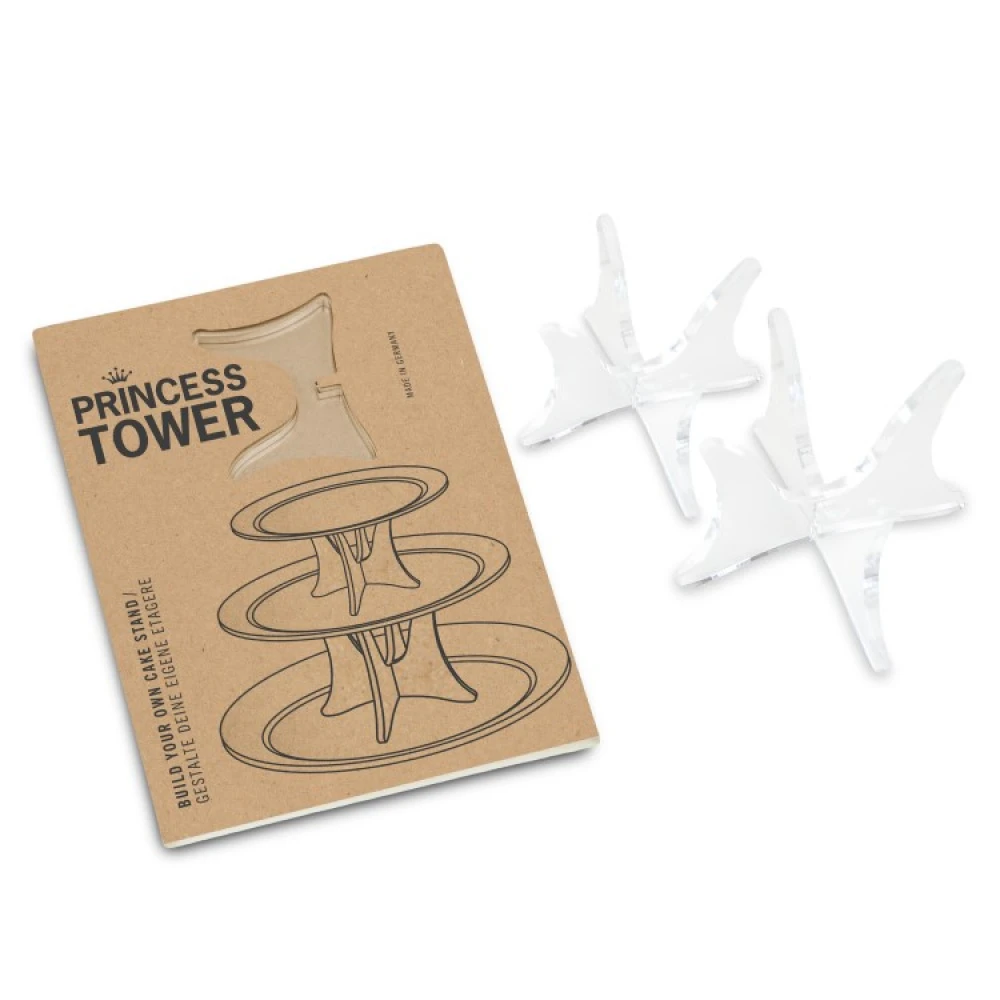 With a pair of cake stand legs, you can make your own multi-tiered cake stand to serve sweet treats on, using the plates you have at home. The transparent legs can be used with any tableware and the 4 pieces can be quickly assembled into one larger leg and one smaller leg.