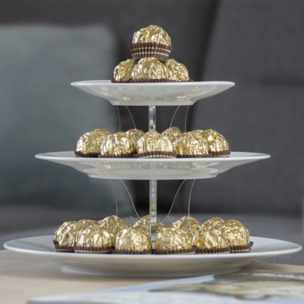 - Builds a 2 or 3 tiered cake stand