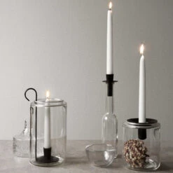 You can create a beautiful glass lantern by placing the candle holder with a lit candle in a wide glass jar or a cylindrical vase. The candle holder can also be used on its own as a chamber candle holder, or as an old-fashioned hand-held lantern to show the way in the dark.