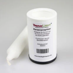 The candle sharpener is 8 cm high, 4.5 cm in diameter, and made of plastic.