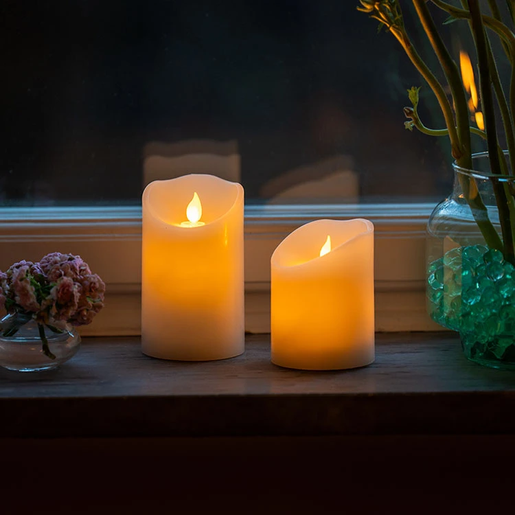 This wax candle casts a lovely glow around the room on dark and cosy nights. The candle has two LED diodes that light up the moving part so the candle flickers as if it were realand shines with a creamy glow..