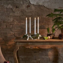 With four battery-powered candles, you can create cosy candle arrangements with different candlesticks or put them together in a 4-armed candlestick. With the remote control, you can easily control the realistic LED flame and choose whether the flaming warm white glow is constant or on a repeating 6/18-hour timer.