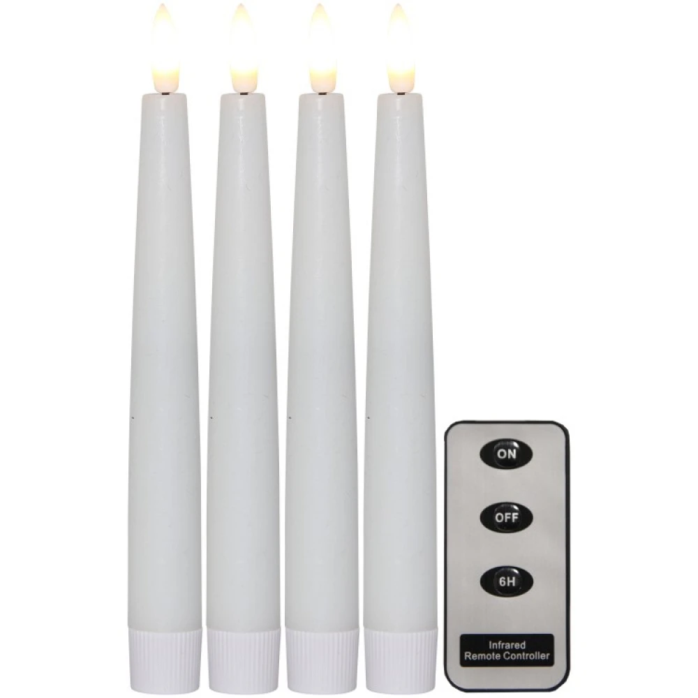The candles are available in two different heights. Choose between a 4-pack of 20 cm high candles and a 4-pack of 28.5 cm high candles. The included remote control works for both heights.