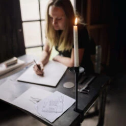 The candlestick with a clamp is hand cast by Emelie Nilsson at the family-run business VÃ…GES, which was named after the founder VÃ¥ge Gustavson. The family has worked as smiths since 1875 and the profession has been passed down through five generations. Today, the company is run by, among others, VÃ¥ge Gustavsson’s four children.
