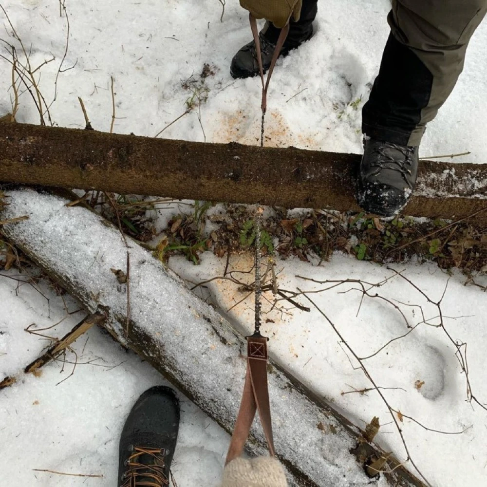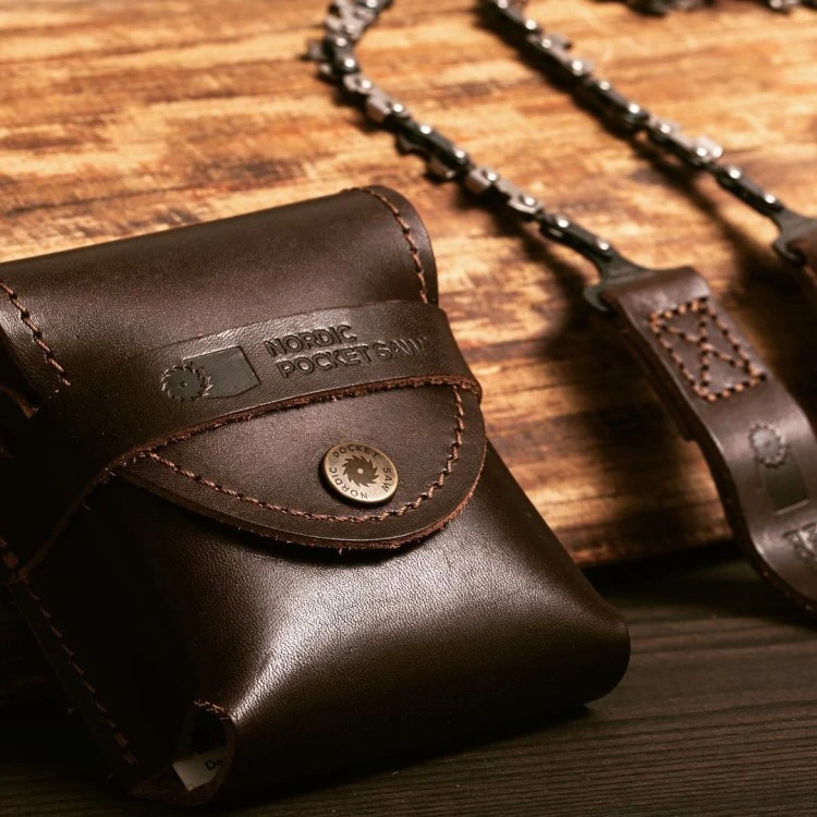 The practical leather case makes it easy to transport the saw when you’re walking in the forest. The case fits in your pocket and has a belt loop on the back so you can carry it on your belt.