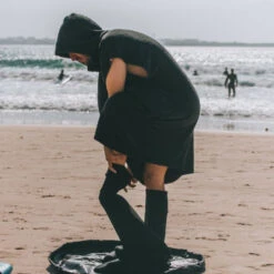 This Changing Poncho is shaped like a large hooded sweatshirt with holes for the arms; simply drape the spacious garment over yourself to give yourself a shield of privacy so that you can change in peace and quiet while drying. It also provides protection from the wind! Plus, it can of course be used as a regular beach towel to keep you comfortable and dry.