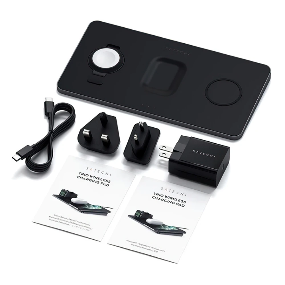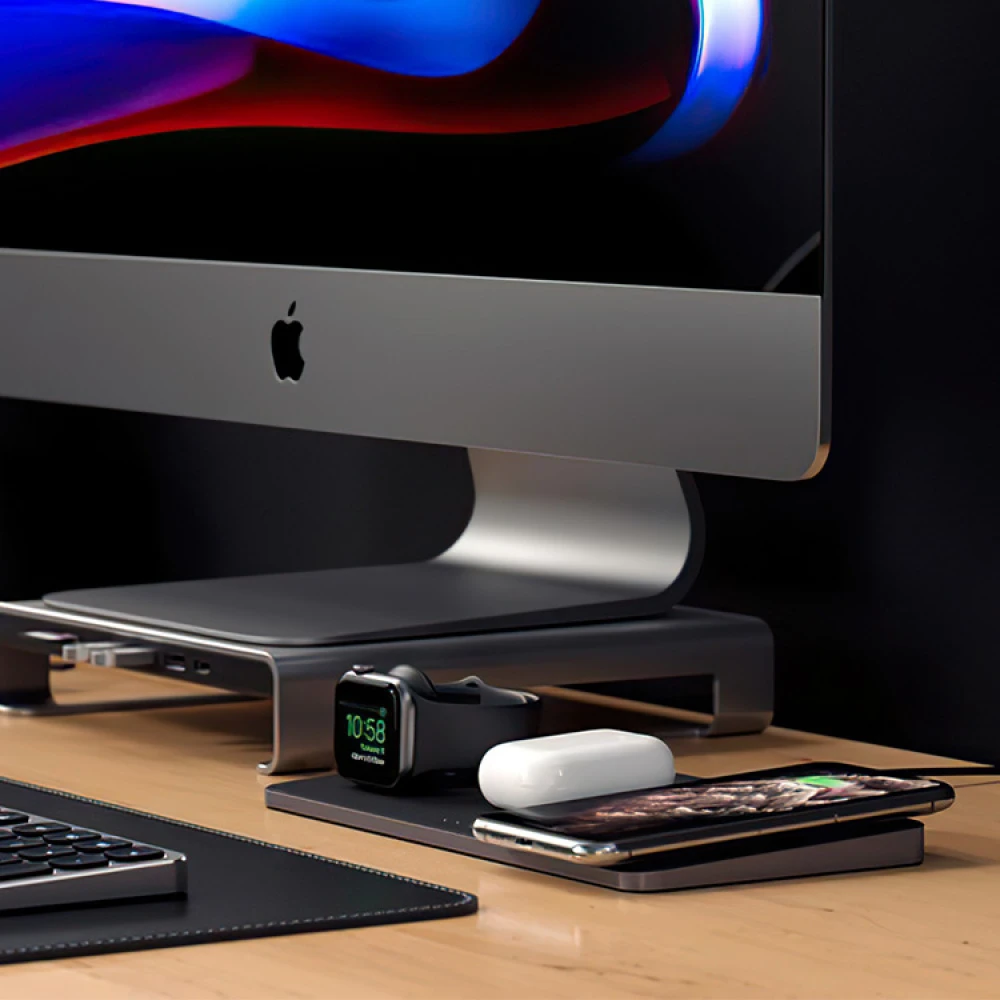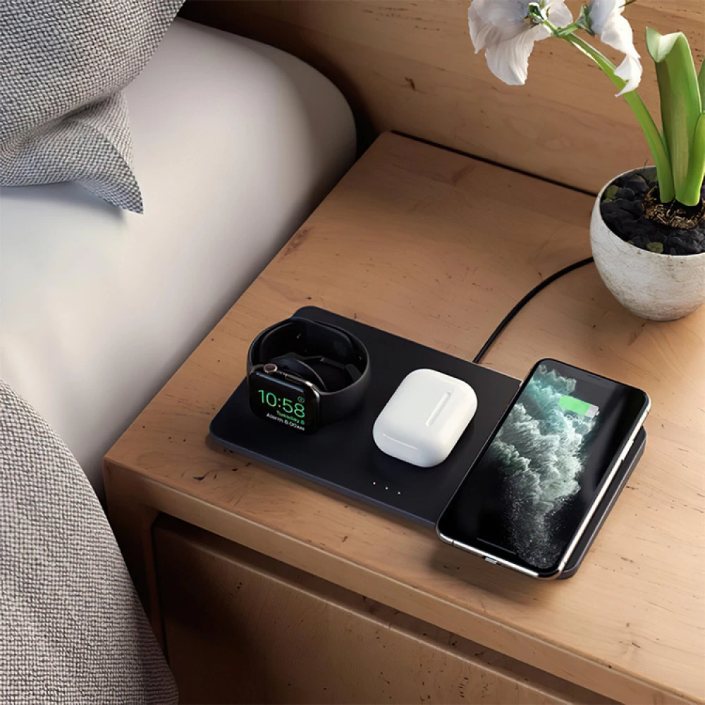 The wireless charging plates charge your devices quickly and help you keep all your Apple devices in the same place. All you need is a single wall socket, and then the wireless charging plates ensure that you can charge your devices without needing any extra cords.