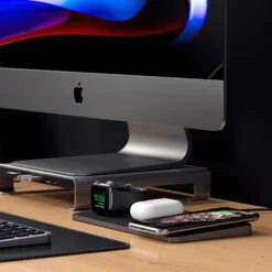 The left-hand zone is dedicated to your Apple Watch and the magnetic charger can be raised at an angle so that you can check your watch display while its charging.