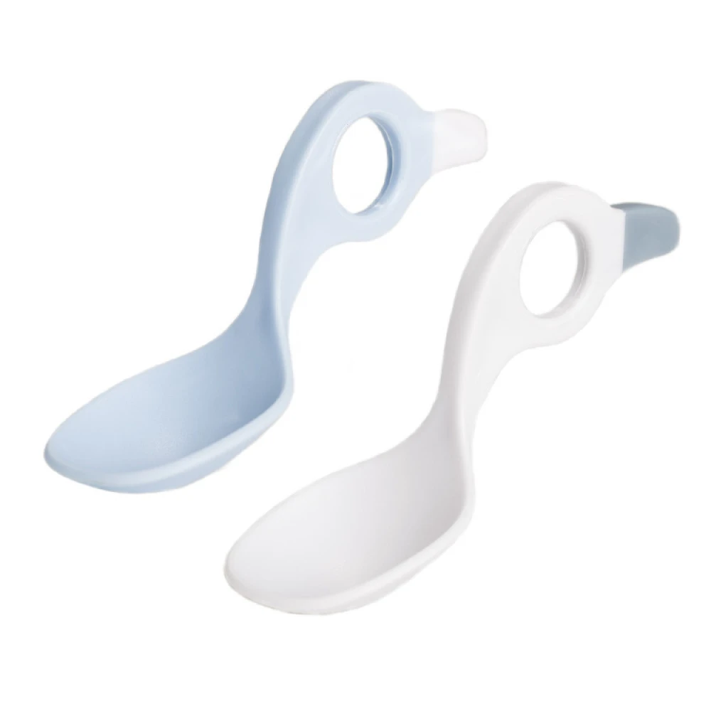 This is the perfect beginner’s spoon for children who want to start eating by themselves. A great way to train your child to get them ready for larger, adult-sized cutlery. The set comes as a 2-pack of colourful spoons in fun and bright shades. Machine washable at 50 °C.
