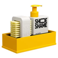 The cleaning kit can be used on all types of trainers and consists of a 150 ml pump bottle with cleaning gel and a double-sided brush. They are packed in a practical storage box that can also be used as a small water tray when you clean the shoes.