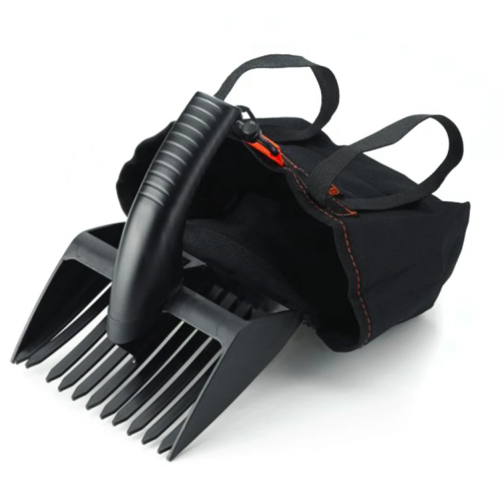 When you have finished with your berry picking, remove the carabiner hook from the handle, remove the handle and place it in the bag and lastly close the bag and tie it with its two elastic bands. Simple!