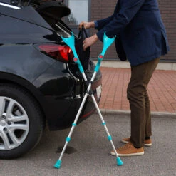 The crutch holder is great in many situations where you have to put them down. They can lean on a car, a chair, yourself or at the store checkout. Perfect if you have to answer the phone, look for your keys or take out your wallet.