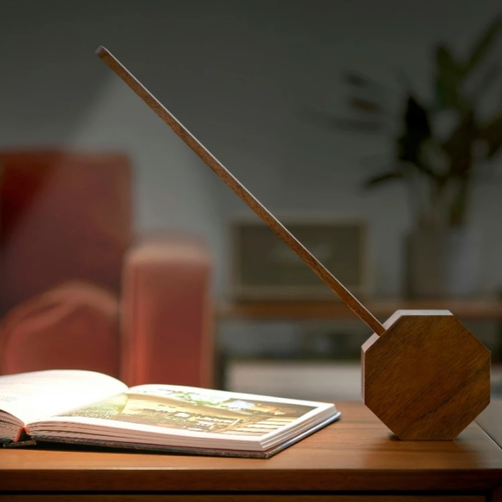 Elegantly designed desk lamp with a built-in alarm clock, bright LED light and an octagonal base that allows the lamp to be angled in four different positions. The cordless desk lamp is made of 100% durable walnut or cherry wood and is perfect to use as a lamp on a desk or as a reading lamp on a bedside table.