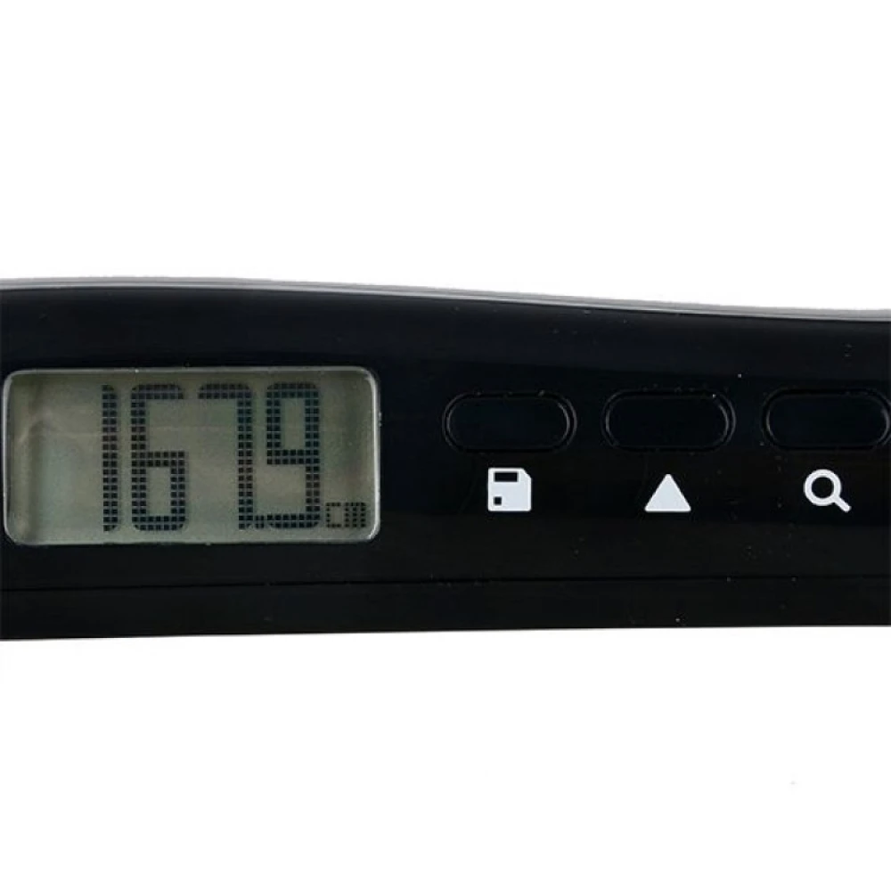 Simply place the device against the wall, above your head, and your height will be measured! The person who is being measured then presses the button and moves to the side. The height will then be shown on the display in just a couple of seconds.