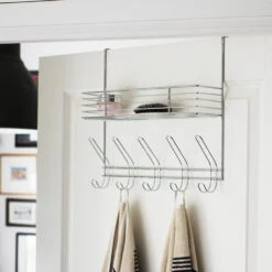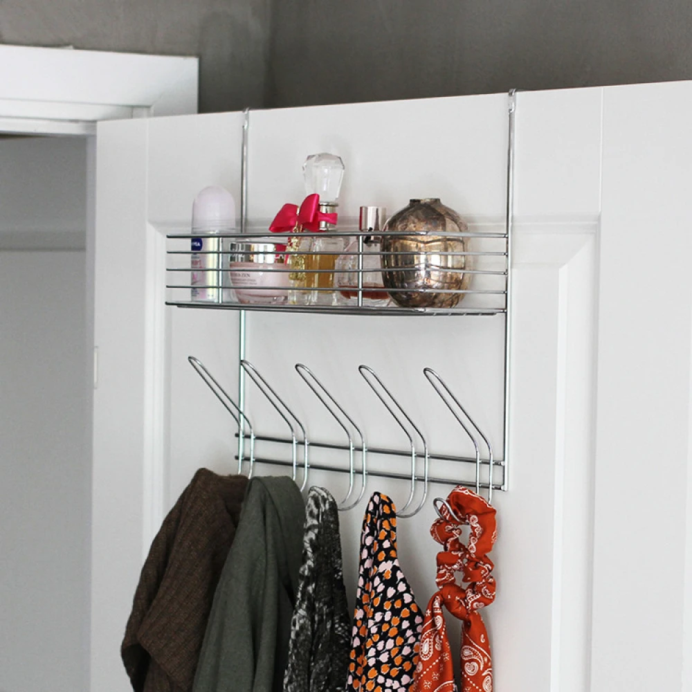 Hang the door hanger over the door. Perfect for the bedroom, bathroom or a hall cupboard. You can hang clothes, outerwear, towels and bathrobes on the hooks. Store things you need easy access to on the shelf.