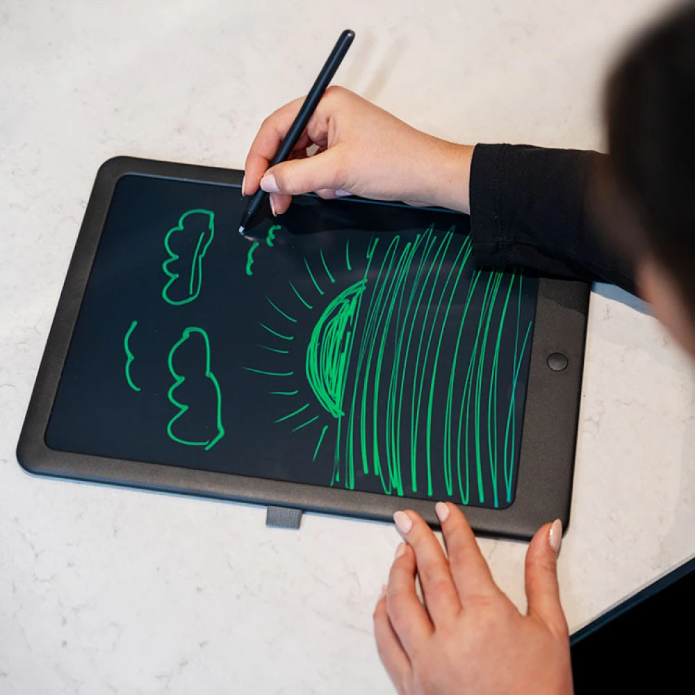 With a drawing & writing tablet, you can draw and take notes as much as you like without having to waste paper. The large LCD screen can be used as a notepad, shopping list, sketchpad or post-it note. The included pen is always close at hand in the pen holder when you want to draw or need to write something down.