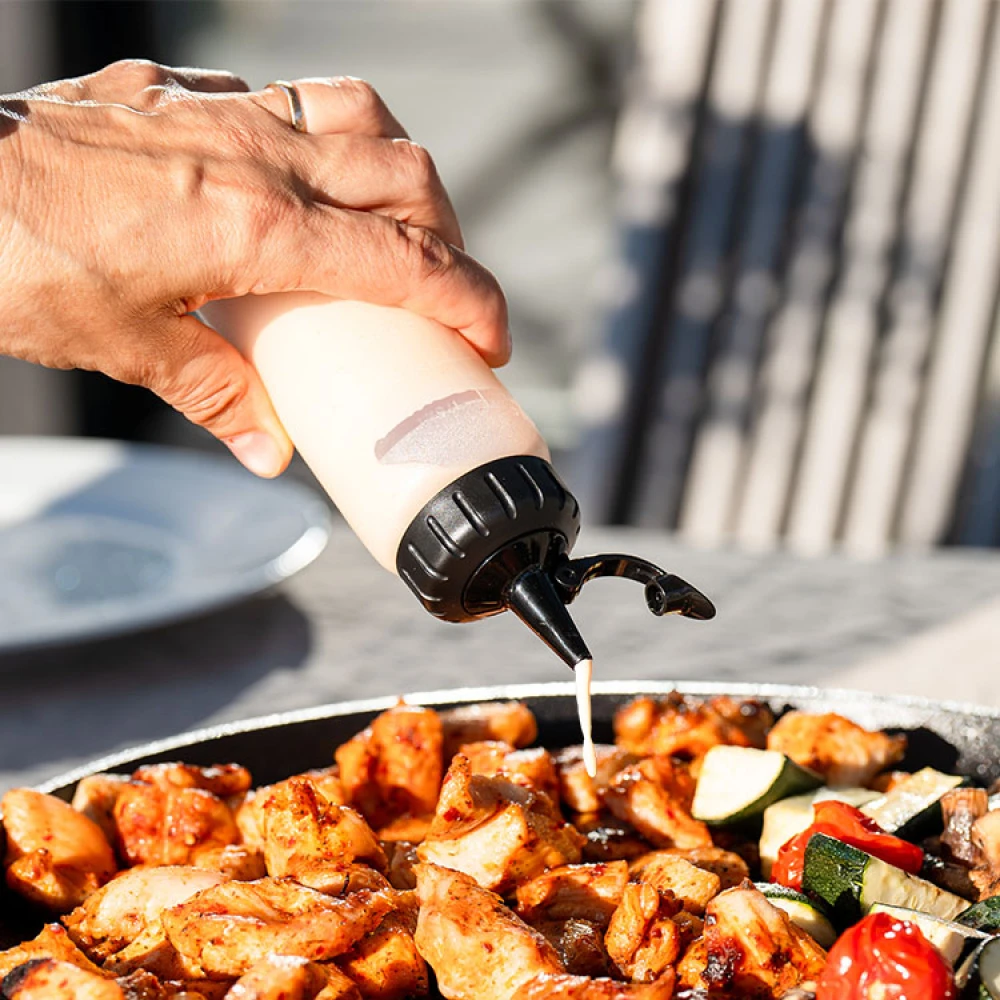 Pour in your own sauces, dressings or marinades in the bottle! The measurements on the outside of the bottle makes it easy to follow recipes. The pourer is also spillage-free making the bottle as easy as possible to use.