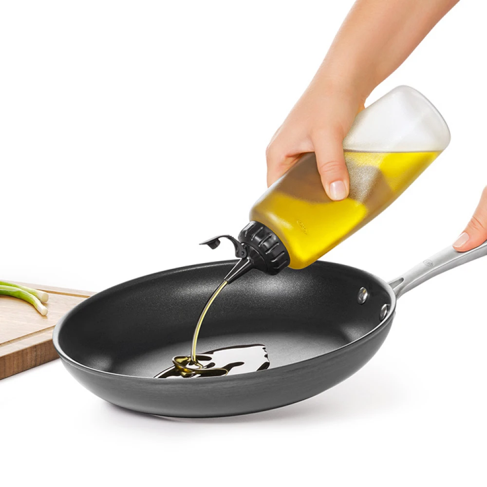 You can decide on how much dressing/sauce you want by squeezing the bottle. The small pourer gives you a good and steady control of the flow, ensuring you get the perfect amount of oil in the pan, dressing on your salad or sauce on your plate.