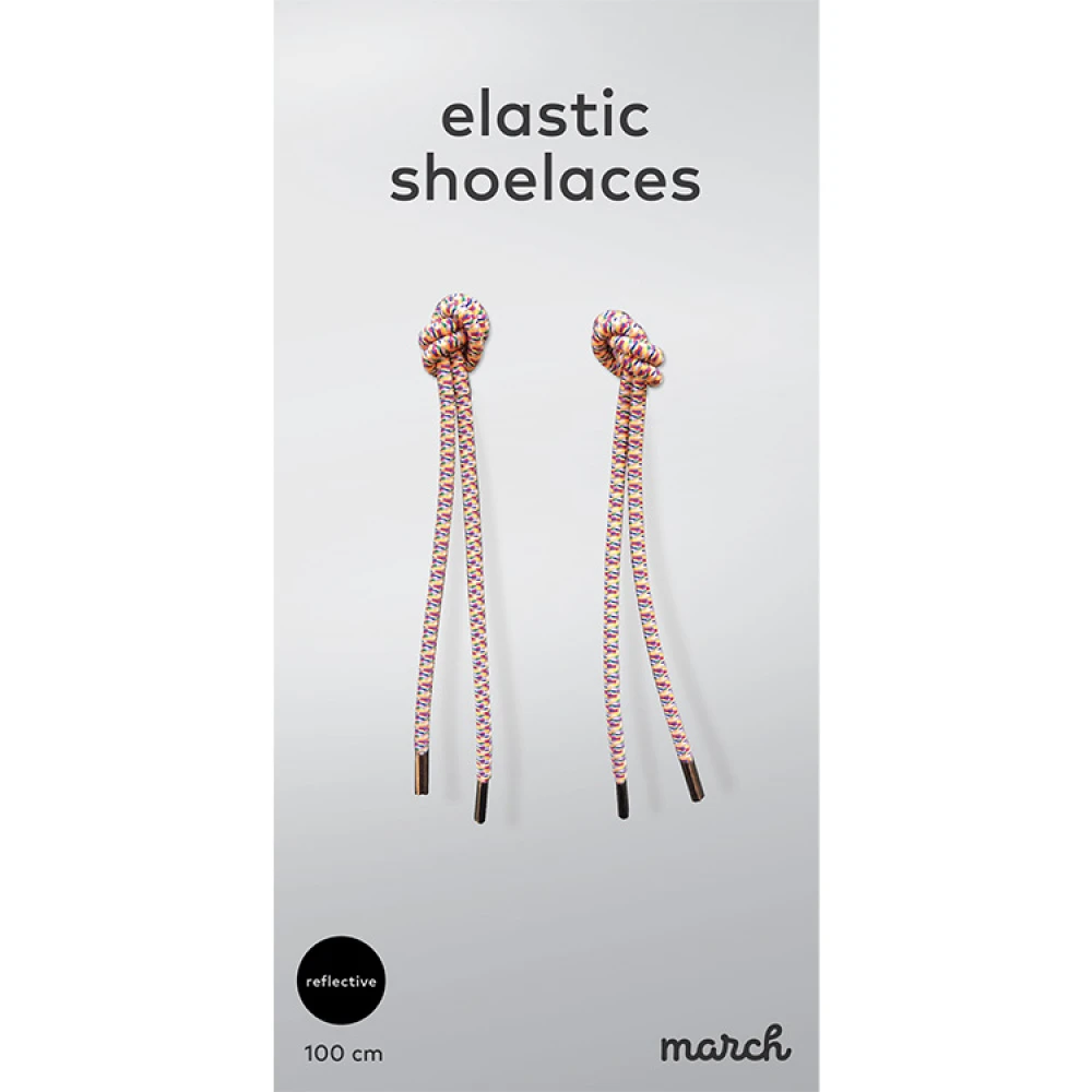The sewn-in reflectors make you visible at night when you are taking a late run or simply out on the town. The elasticity of the shoelaces makes them sit sturdily without applying pressure to your feet. The laces conform to the shape of your foot.