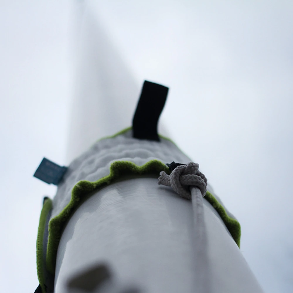 Soak the flagpole mop in water and wrap it around the pole with the Velcro strap. Make sure the the green side is facing inward. Thread the flagpole ties through the loops and lift the mop up the flagpole. Slide the mop up and down until the pole is clean again. For stubborn dirt, attach the ties to the loops on the opposite side of the flagpole and adjust where the mop comes into contact with the pole.