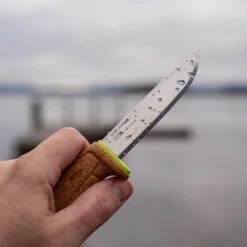 The Swedish knife from Mora floats if it ends up in the water and is very light which makes it perfect to bring on a fishing trip or an excursion. The sharp blade makes it a good all-round knife that can withstand most things, and the comfortable handle made of cork feels good to hold while giving you a good grip during wet conditions. The blade is made of high-quality stainless steel and can be used in all kinds of environments.