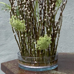 By pressing cut flowers, twigs and branches onto the sharp nails, you can easily arrange beautiful flower arrangements to place at the bottom of a vase, on a platter or on another flat surface. The hole in the middle of the flower holder makes the flower arrangement airy and neat. The inner diameter is 16.5 cm and if you wish, you can also place the facet around another vase or a beautiful object.
