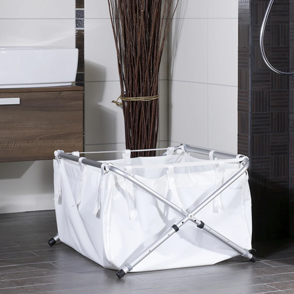 The bath is flexible for all shower spaces and shower cabins. The size can be adjusted from 70 cm x 70 cm to 70cm x 90 cm, which are the dimensions of the minimum space needed for a water-filled bath. After use, the bath can be folded and put away. The bath is also ideal for hanging on a wall and takes up minimum space.