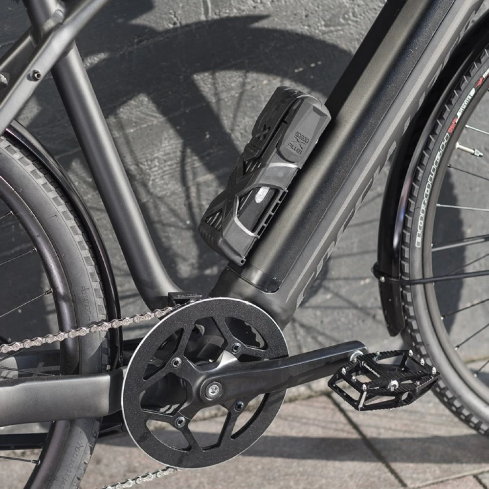When it is unfolded, the lock has a diameter of 85 centimetres that lets you reach around both the frame of the bike, and the pole you want to lock it to. The accompanying mount allows you to always bring the lock with you on the bicycle. The mount is attached to the frame with 2 cable ties (included).
