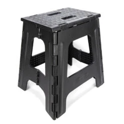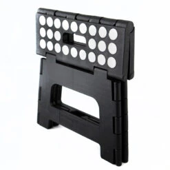 Sturdy, collapsible, plastic stool for hard to reach places in the kitchen, bathroom or garage. The stool features anti-slip surfaces under the feet of the stool and on the stool’s surface so it’s secure to stand on.